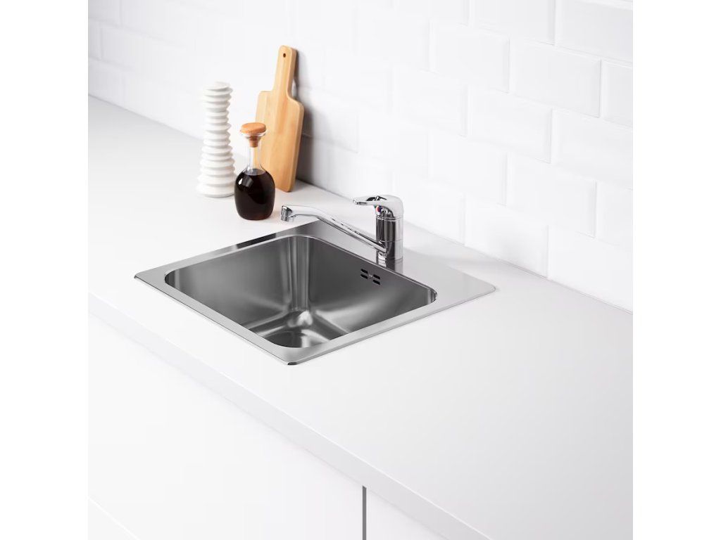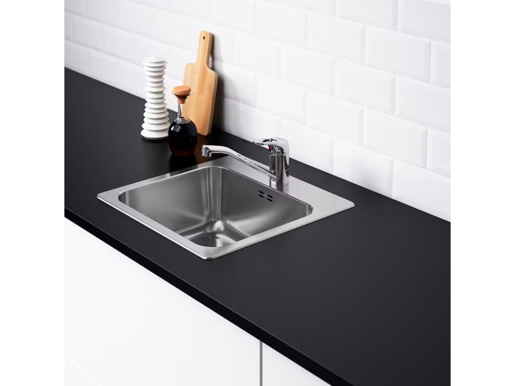 Dřez z nerezavějící oceli je hygienický, pevný a odolný a snadno se čistí.