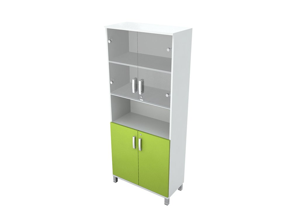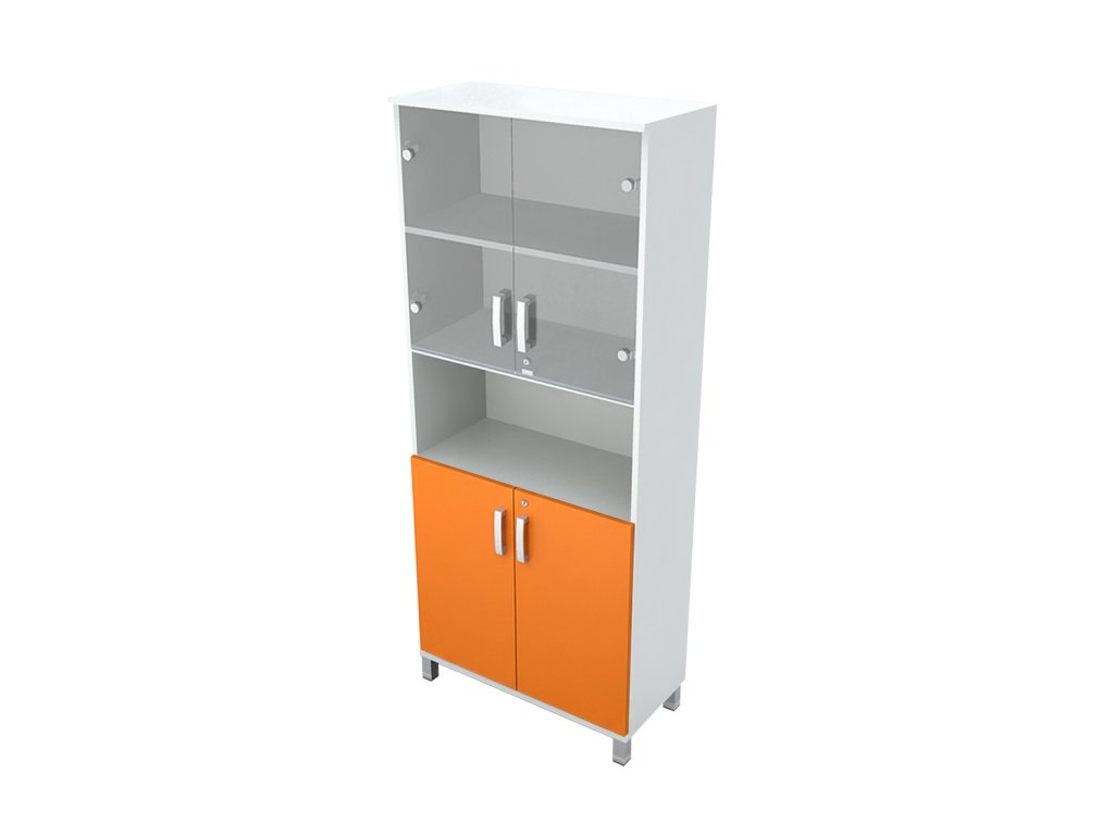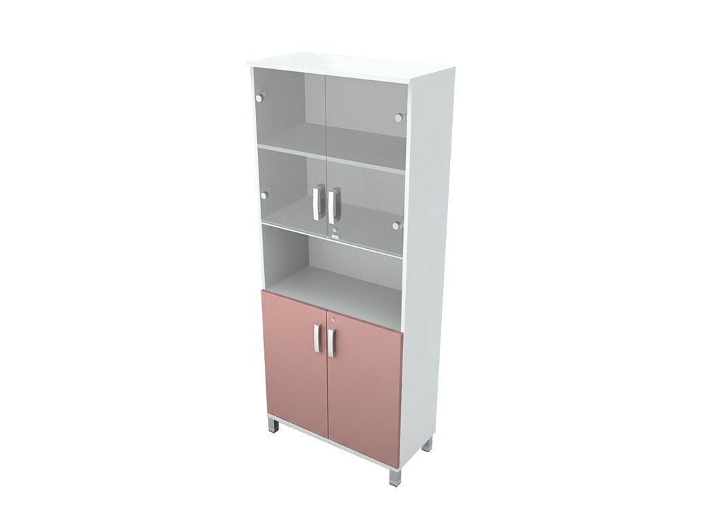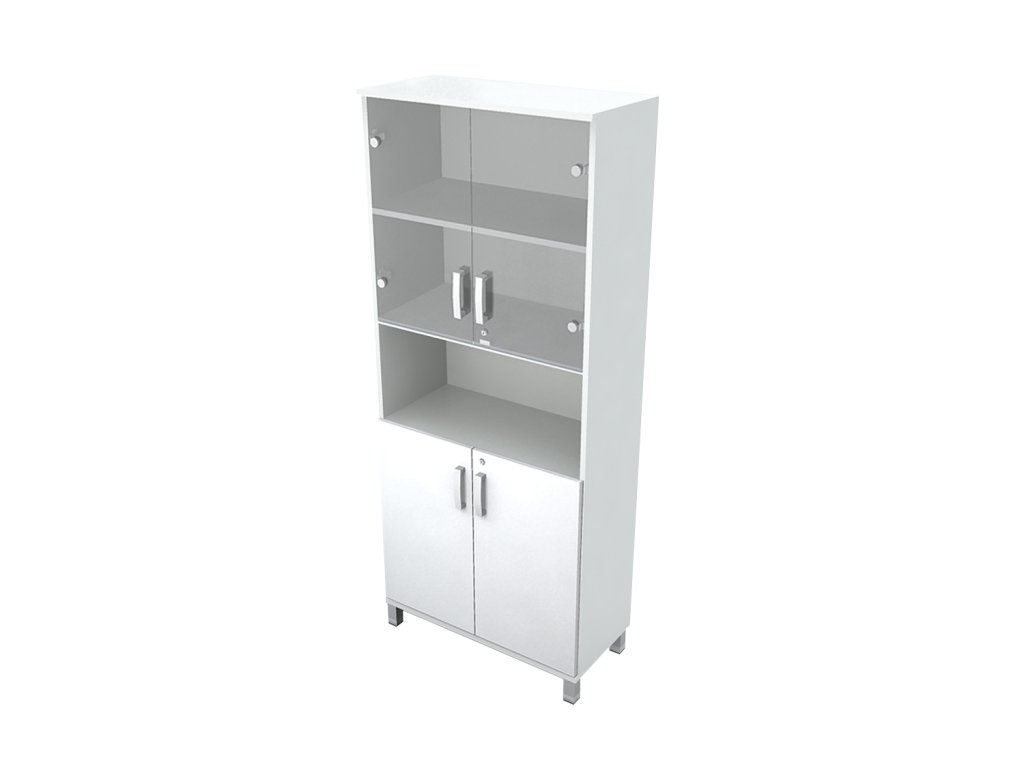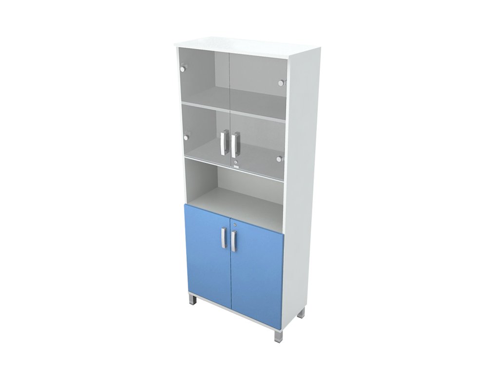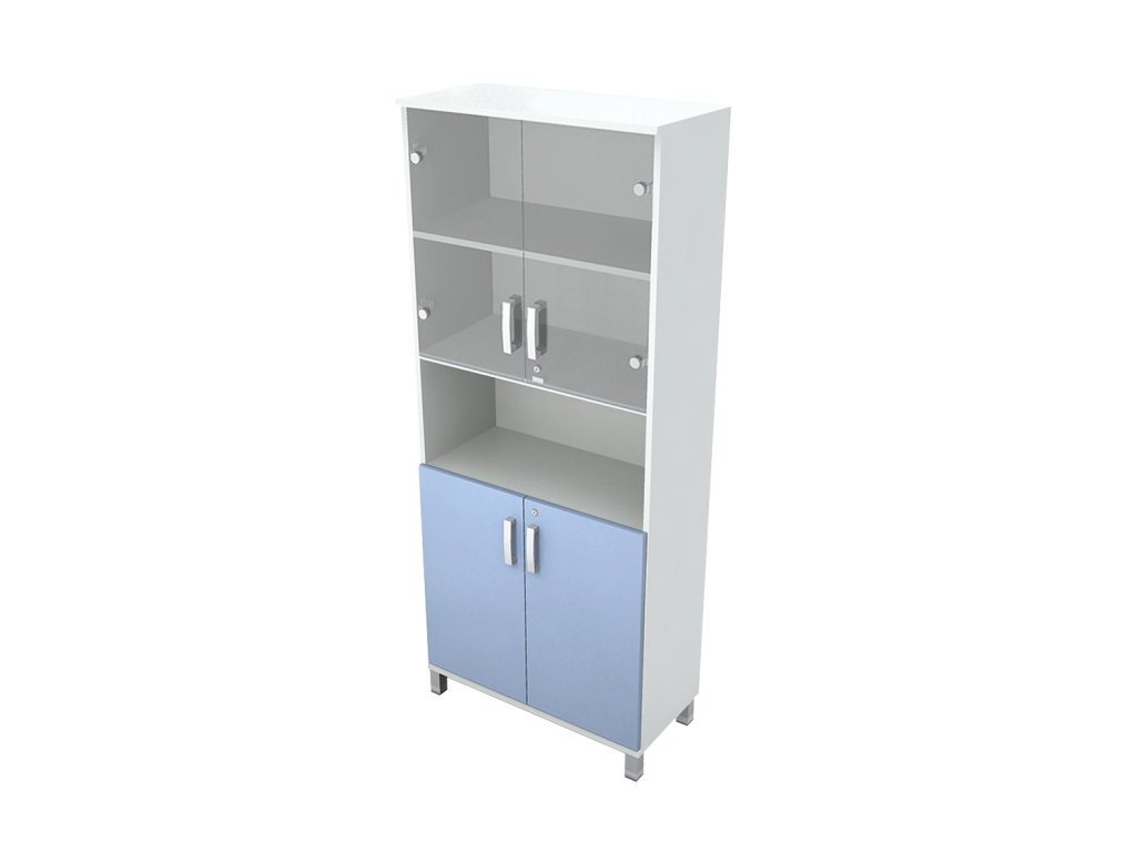 Skříň do ordinace vysoká, dveře dělené / sklo, police